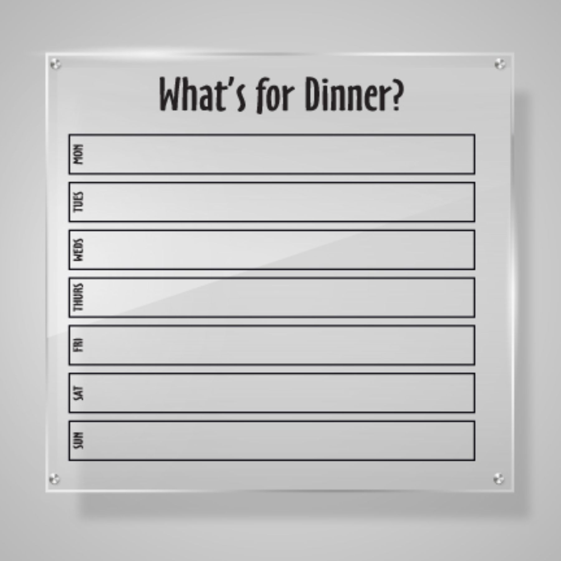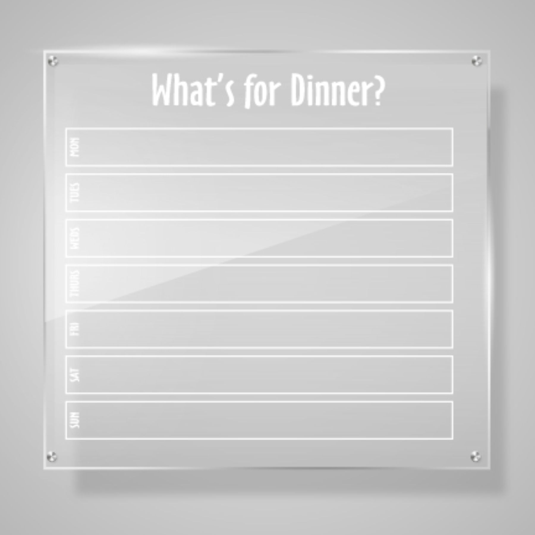 10″ x 10″ Clear Acrylic Sign. Dinner planner.