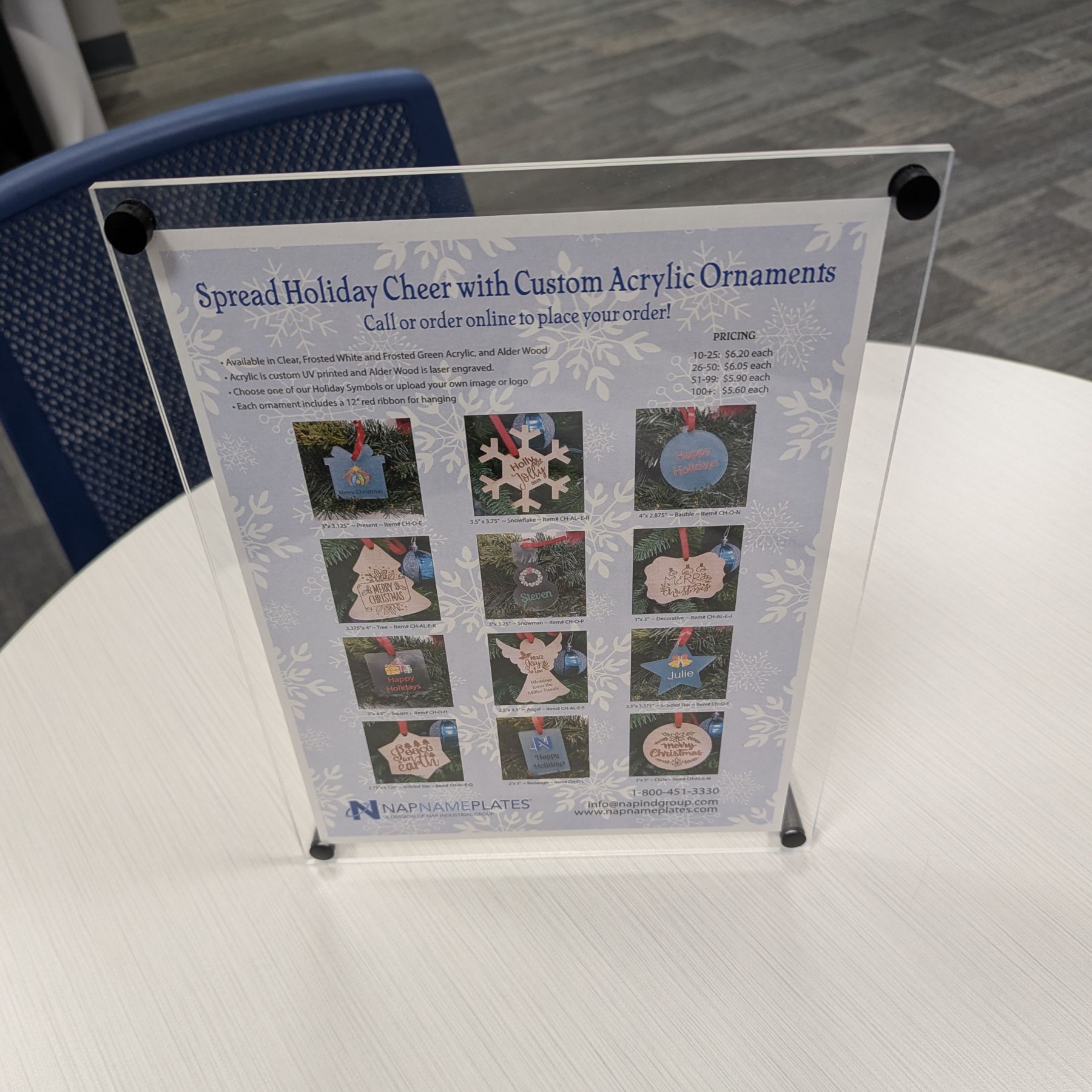 Print custom sign right from your office printer! Will hold a standard 8.5″ x 11″ piece of paper.