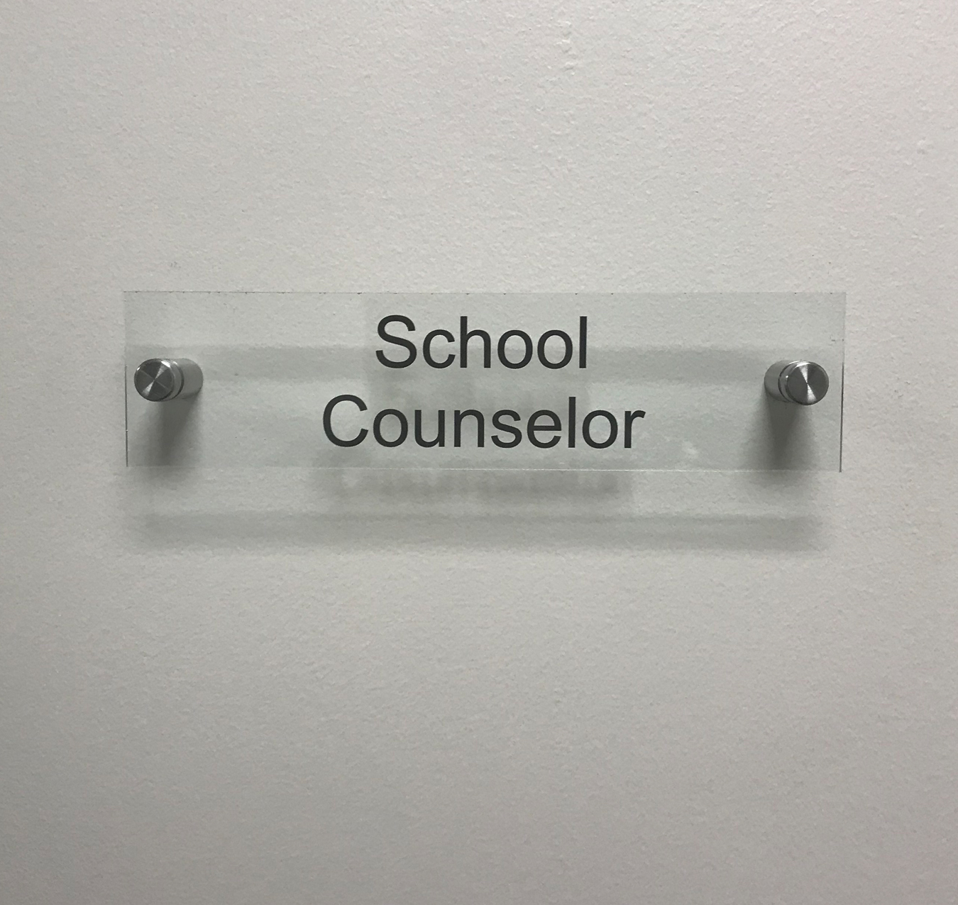 School Counselor signs are made of clear acrylic, and printed in black for a simple, yet unique and professional look.