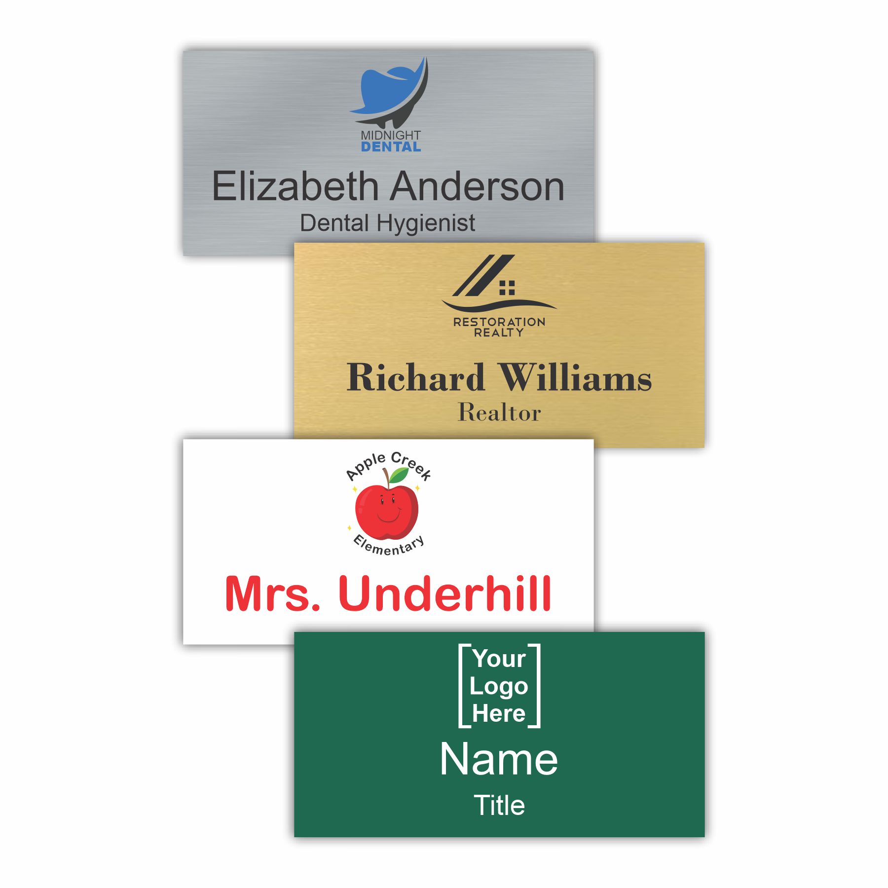 Custom print names, logos, graphics and more on 13 background colors with optional adhesive or magnetic backer.