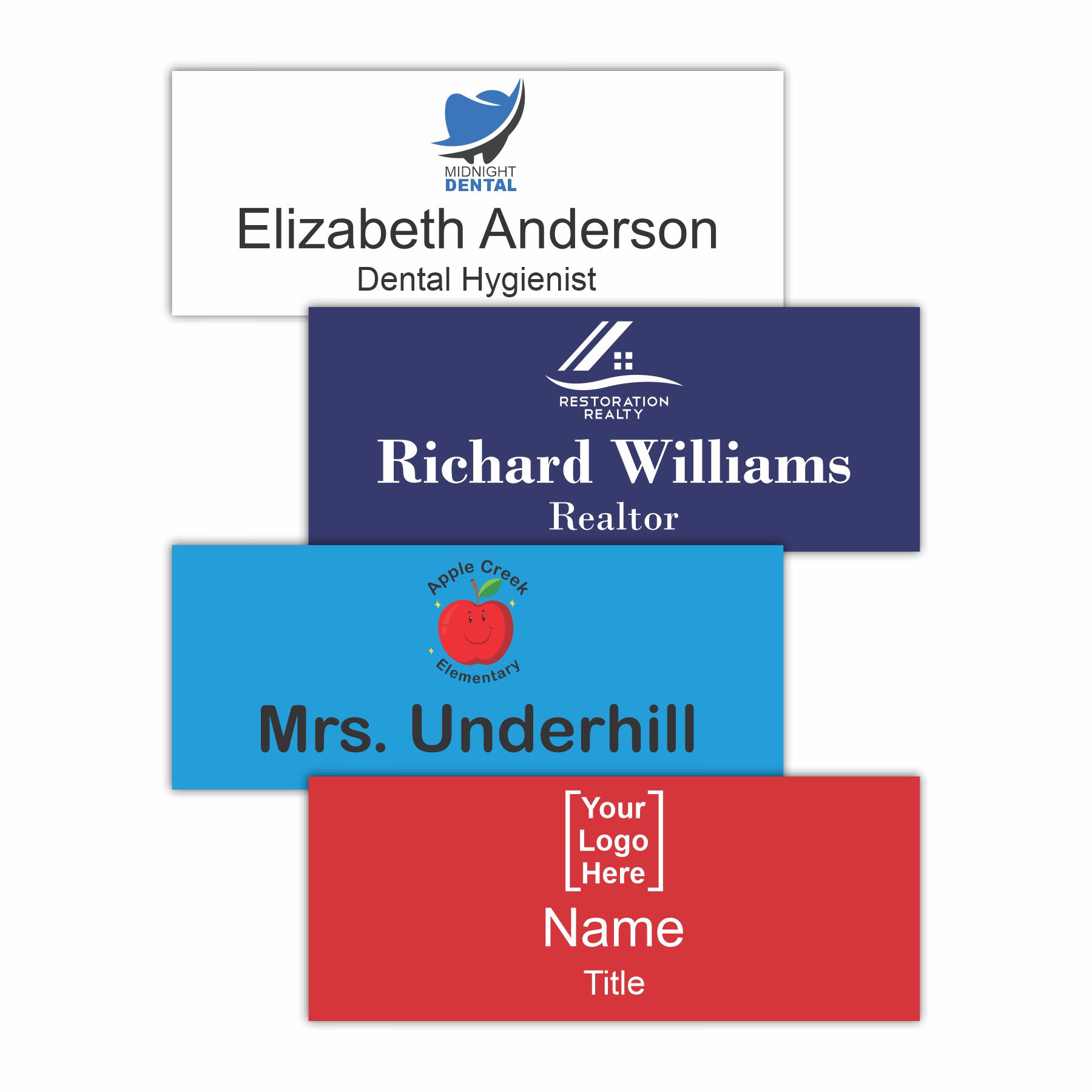 Full-color printing is vibrant, scratch resistant and eye-catching! Custom print names, logos, graphics and many background colors, then easily slide them into 10″ x 4″ nameplate holders.