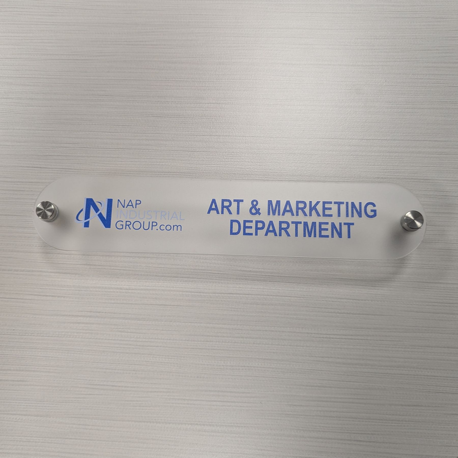 10″ x 2″ classic oblong shape, these acrylic name plates easily “float” mount to any wall in your office and look great! Perfect for employees, directional signs, lobbies, reception areas and more.