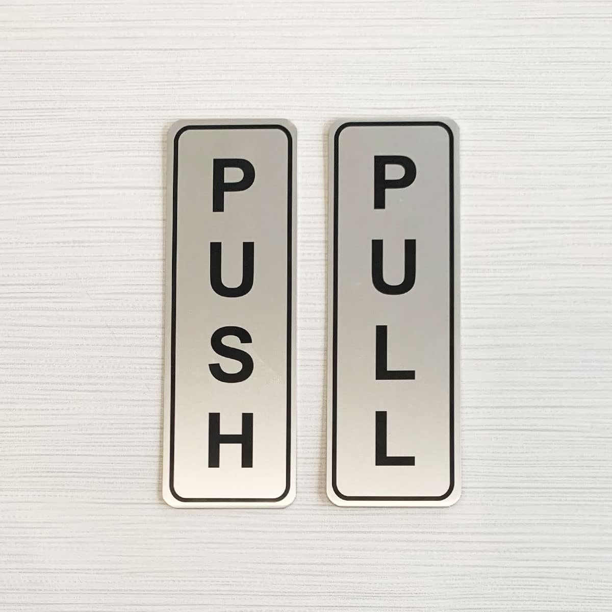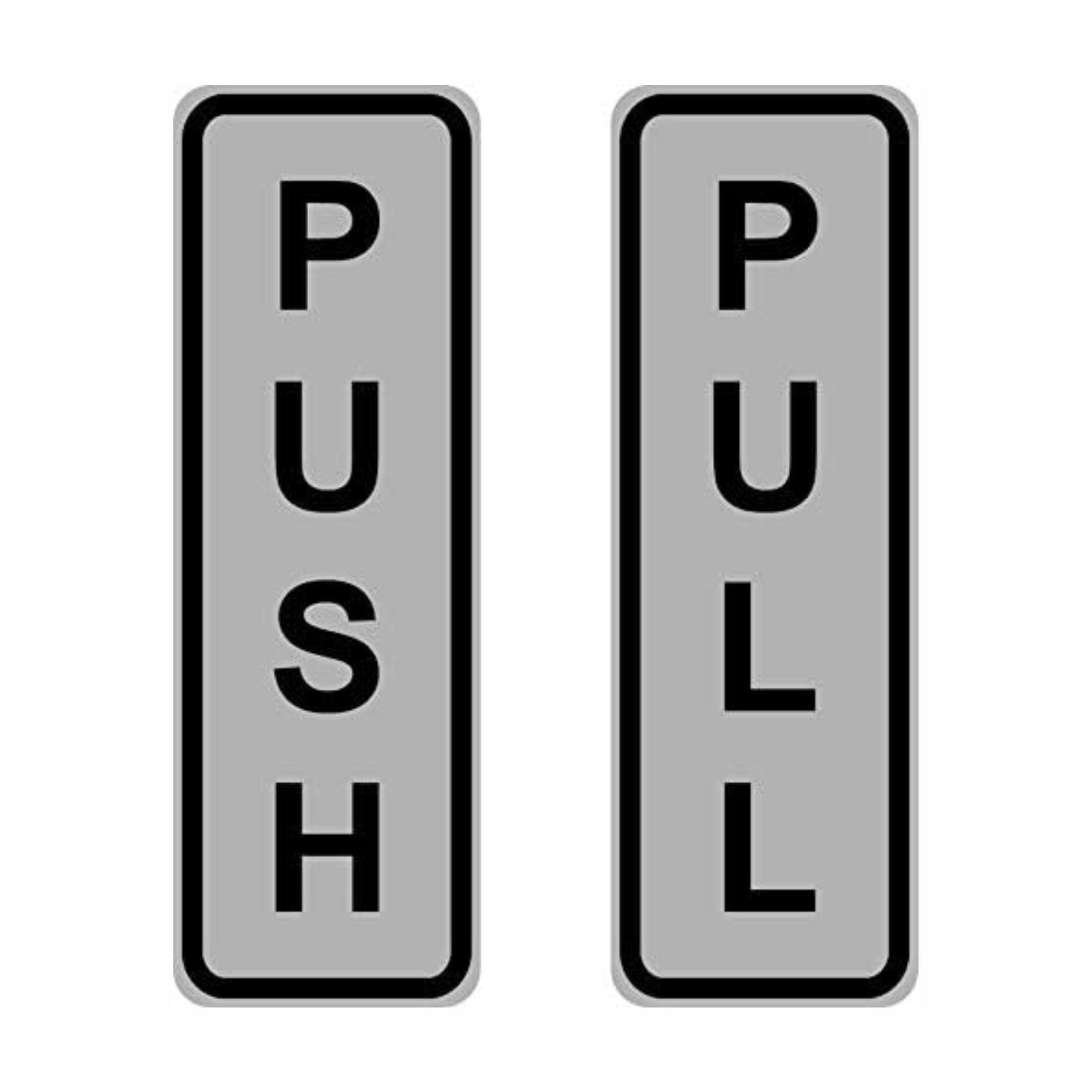 Push and Pull Door Signs, Satin Silver Aluma-Tough, 2″ x 6″