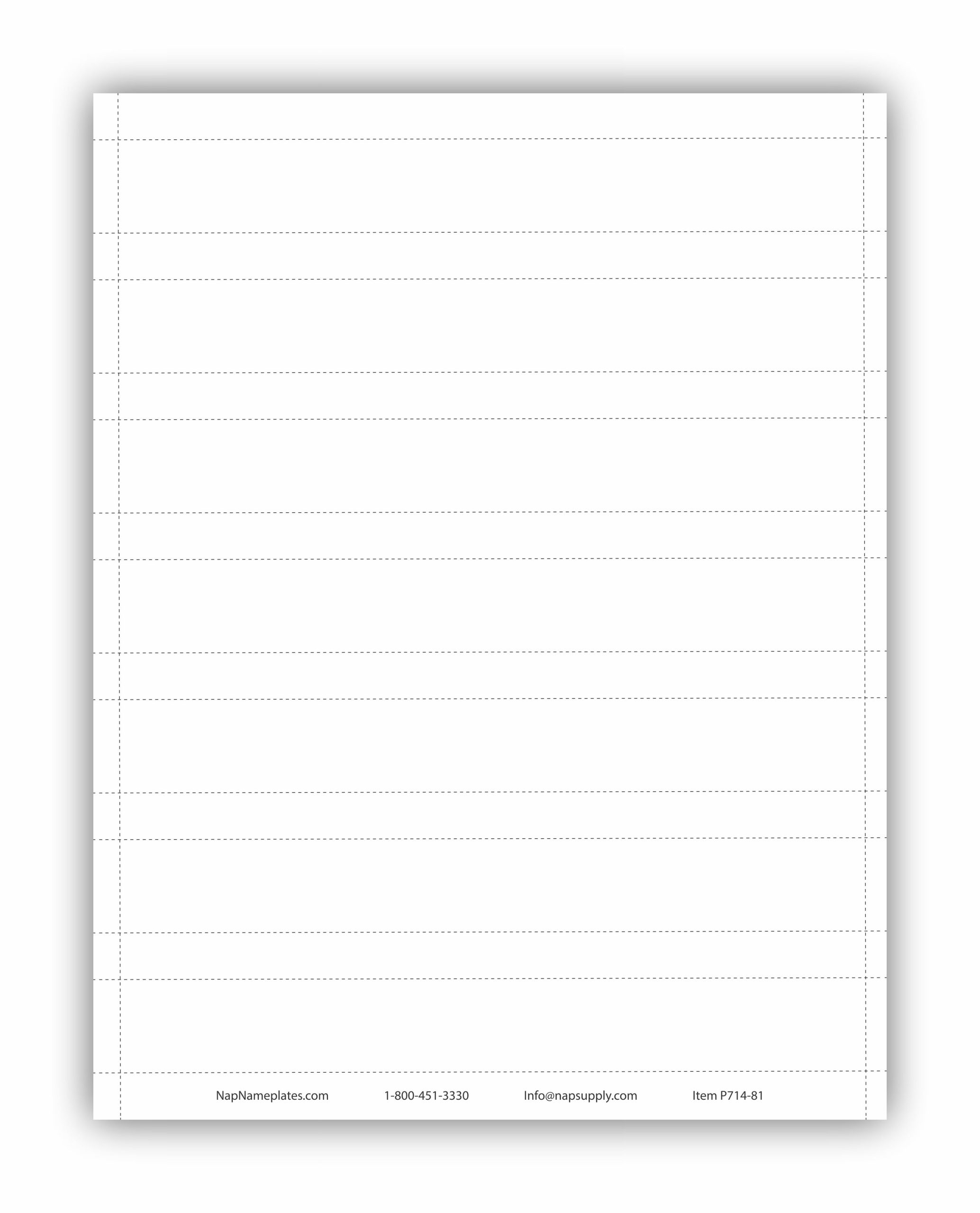 - 8-1/2” x 11″ sheets include seven 8″ x 1″ nameplates