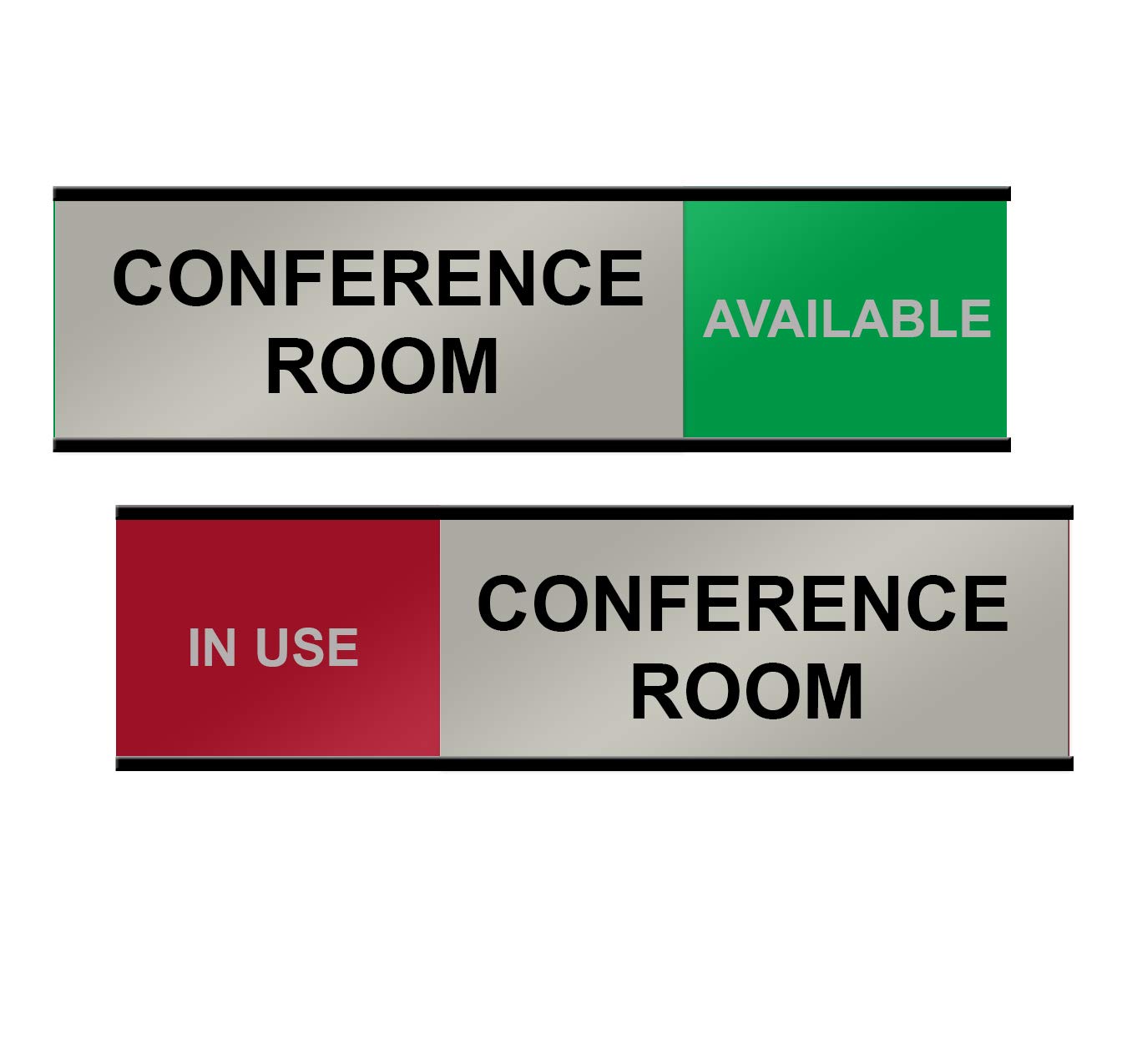 Durable, professional office slider signs for conference rooms slides to reveal the status of the room.