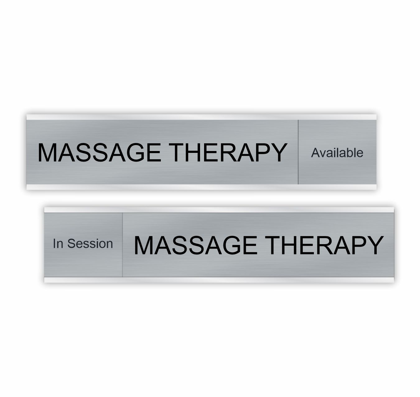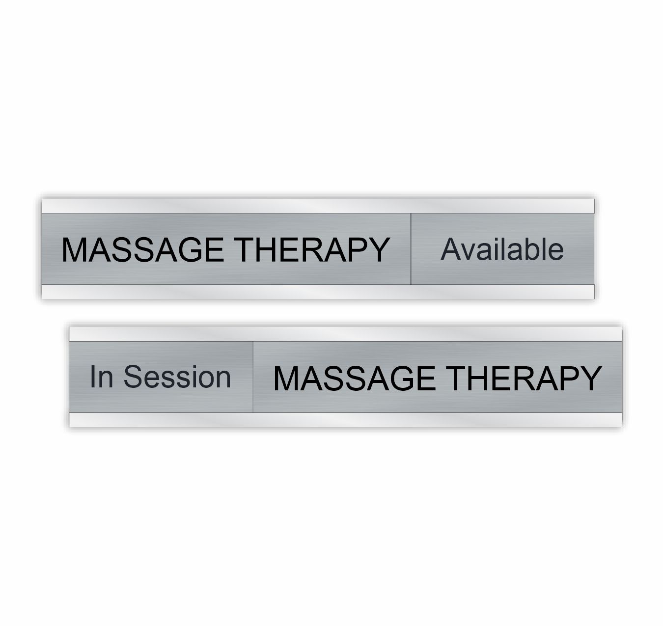 Quickly reveal the status of message therapy room or area with a professional sliding sign.