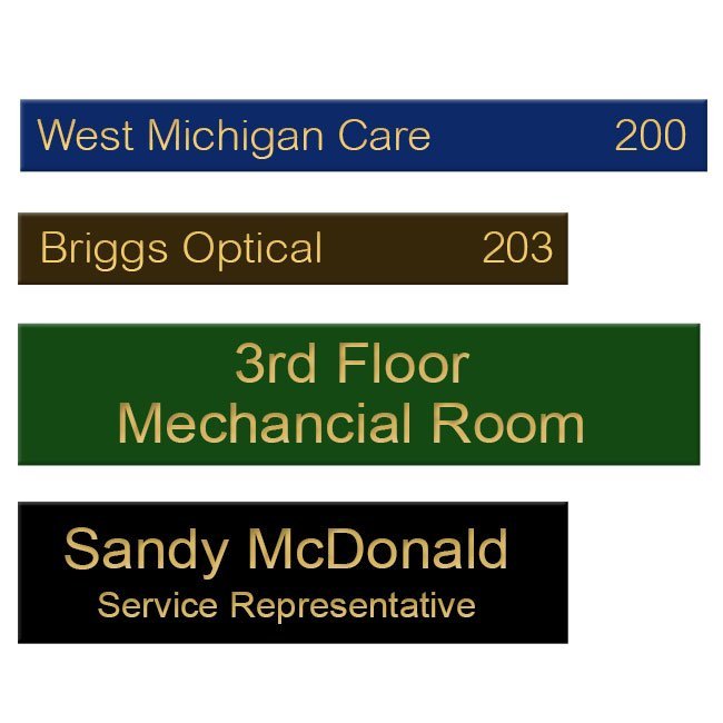 Personalize office nameplates for executives, employees, or even for signs around the office. Great for desks, doors, lobbies and directional signs.
