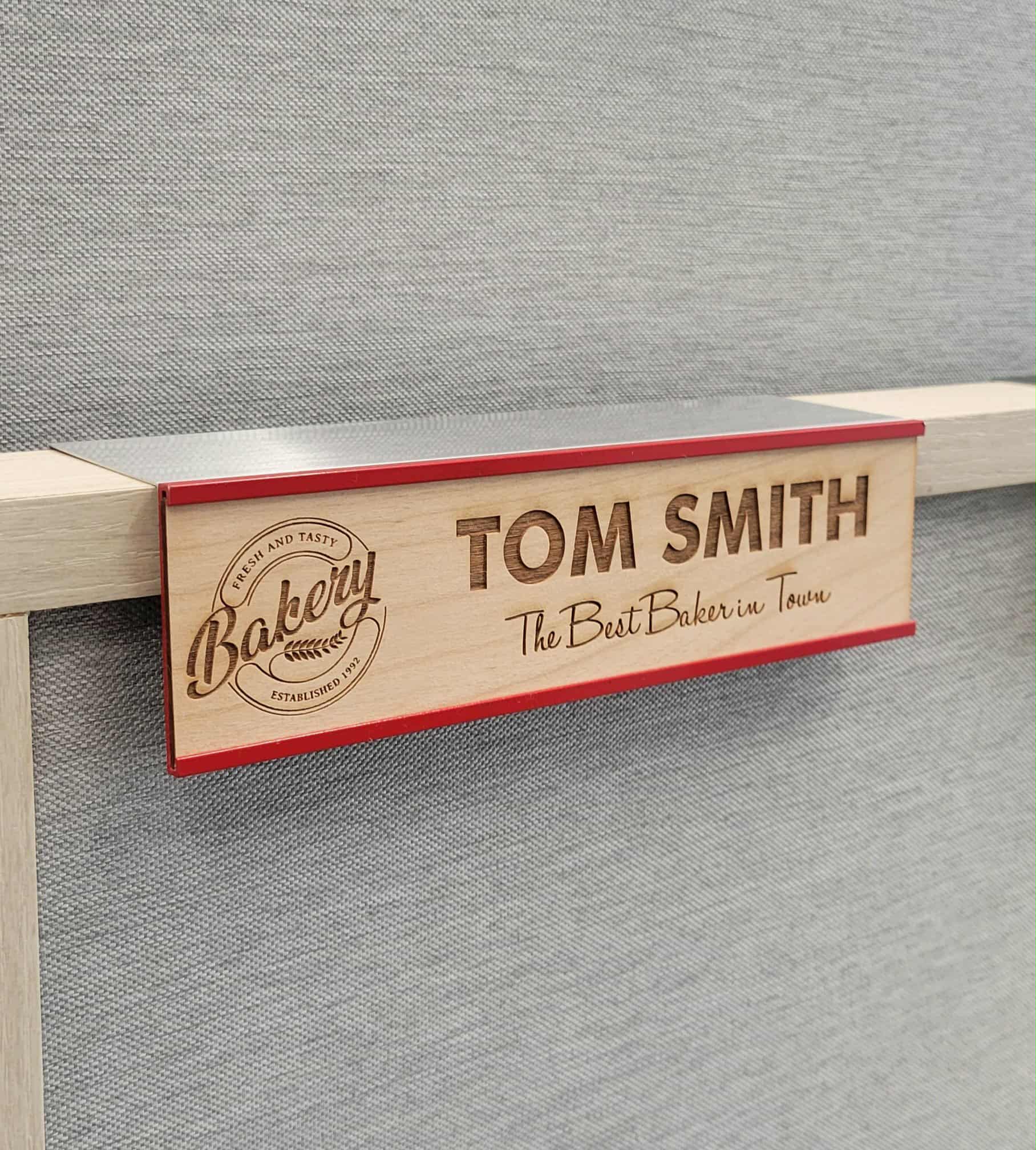 Crafted from sustainably sourced alder hardwood, each nameplate features precision laser engraving for a clean, rich contrast that highlights your name, title, or logo beautifully.