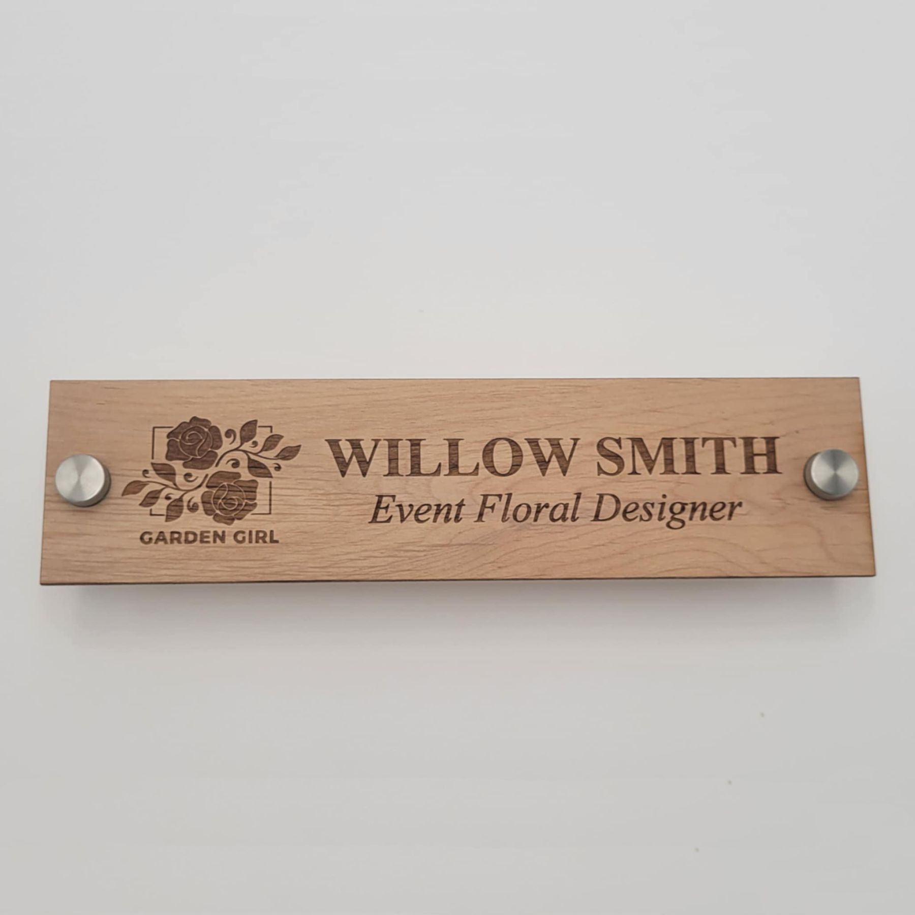 Bring a touch of natural elegance and professional personalization to your space with our Custom Laser-Engraved Alderwood Name Plates.