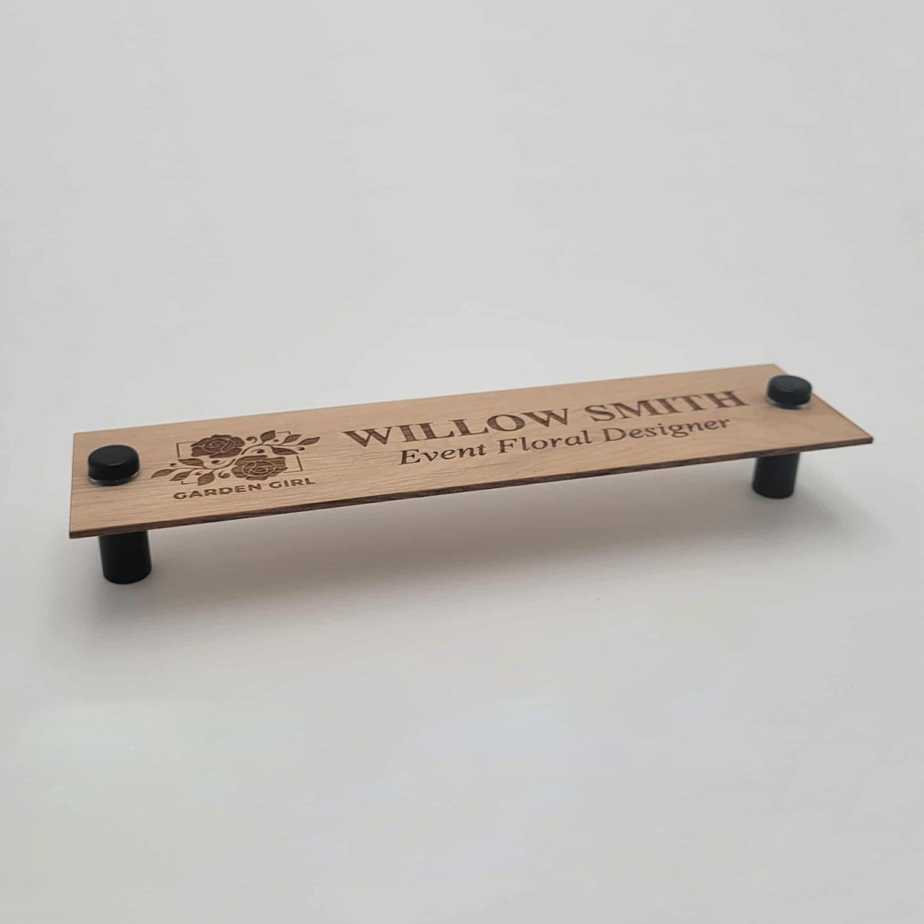 Crafted from sustainably sourced alder hardwood, each nameplate features precision laser-engraving for a clean, rich contrast that highlights your name, title, or logo beautifully.
